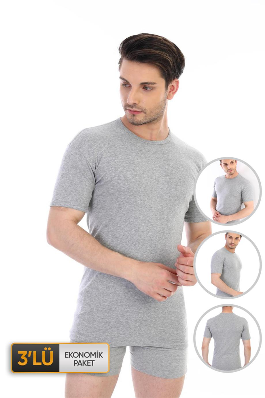 Erkek Ribana Bisiklet Yaka Gri Fanila 0841 3'lü Ekonomik Paket