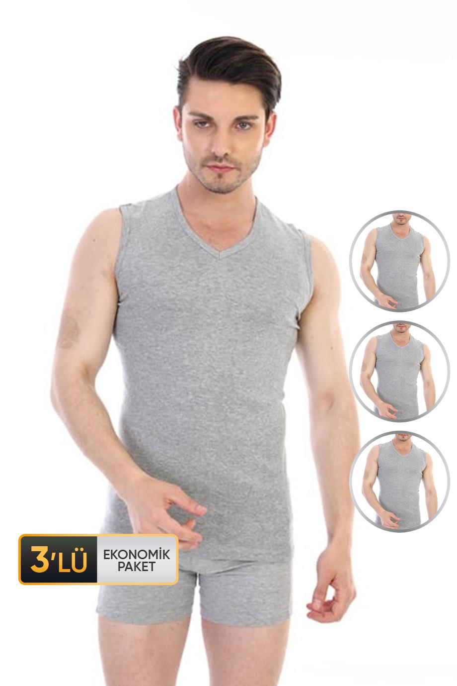 Erkek Ribana V Yaka Kolsuz Gri Atlet 921 3'lu Ekonomik Paket